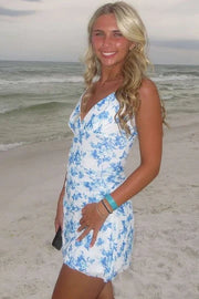 Stunning Spaghetti Straps V-Neck Print Tight Sleeveless Homecoming Dress  - US 2 / UK 8 / EU 32