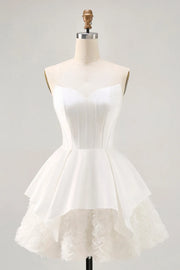 White Strapless Tiered Short Corset Homecoming Dress with Ruffles
