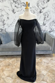 Black off shoulder mermaid bride mother dress with balloon sleeves