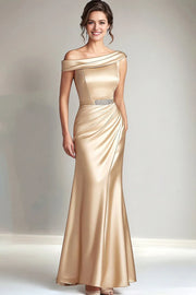 Champagne Off the Shoulder Mermaid Long Mother of the Bride Dress