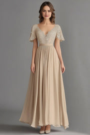 Champagne V Neck Appliques A Line Pleated Mother of the Bride Dress