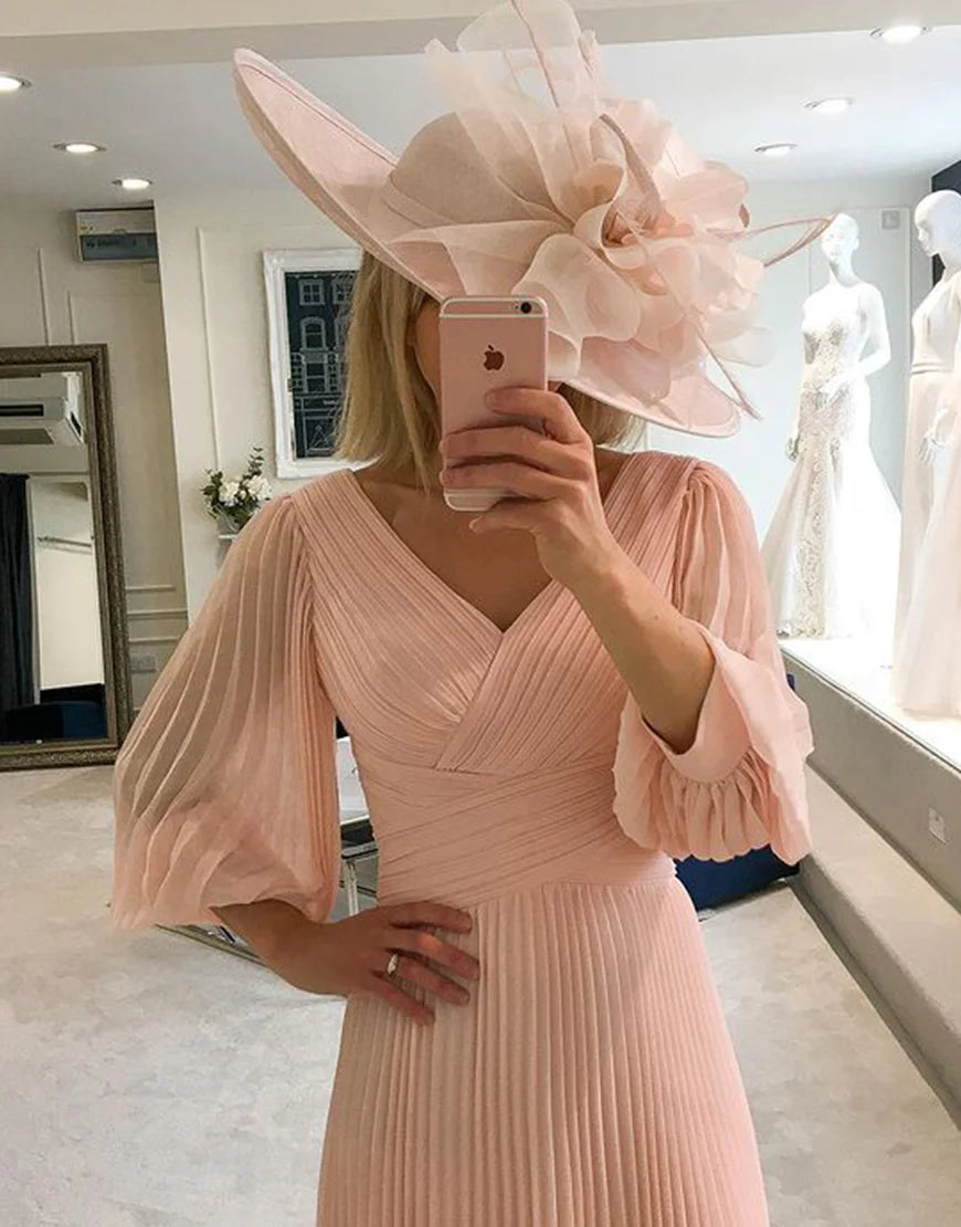Chiffon Pleated Mother of the Bride Dress with Sleeve