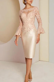 Elegant A-line Lace Long-Sleeve Mother-the-bride Dress