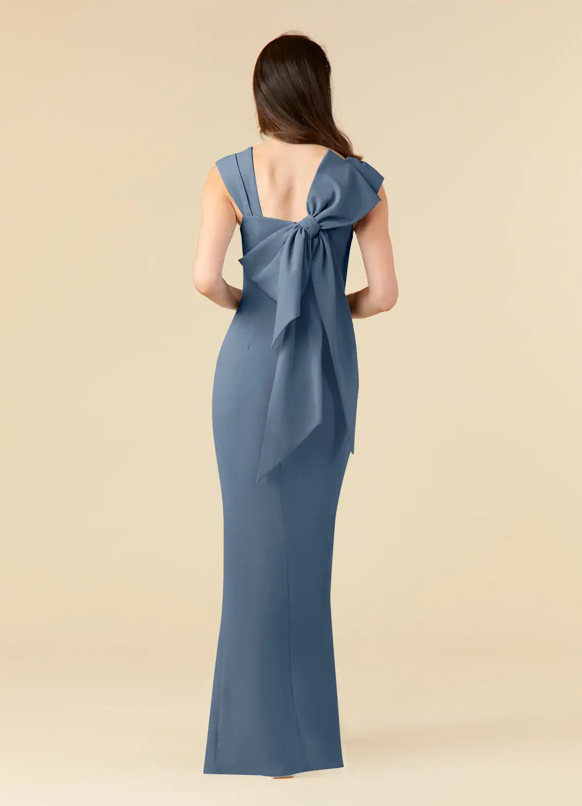 Elegant Mermaid Square-Neck Cap-Sleeve Bow-Back Floor-Length Mother of the Bride Dress - US 2 / UK 8 / EU 32