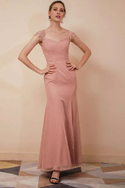 Gorgeous Mermaid Embroidery Sheer straps Chiffon Long Dress - Pink / US 2 / UK 8 / EU 32