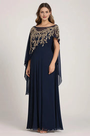 Sparkly Navy Chiffon Mother of Bride Dress with Cape