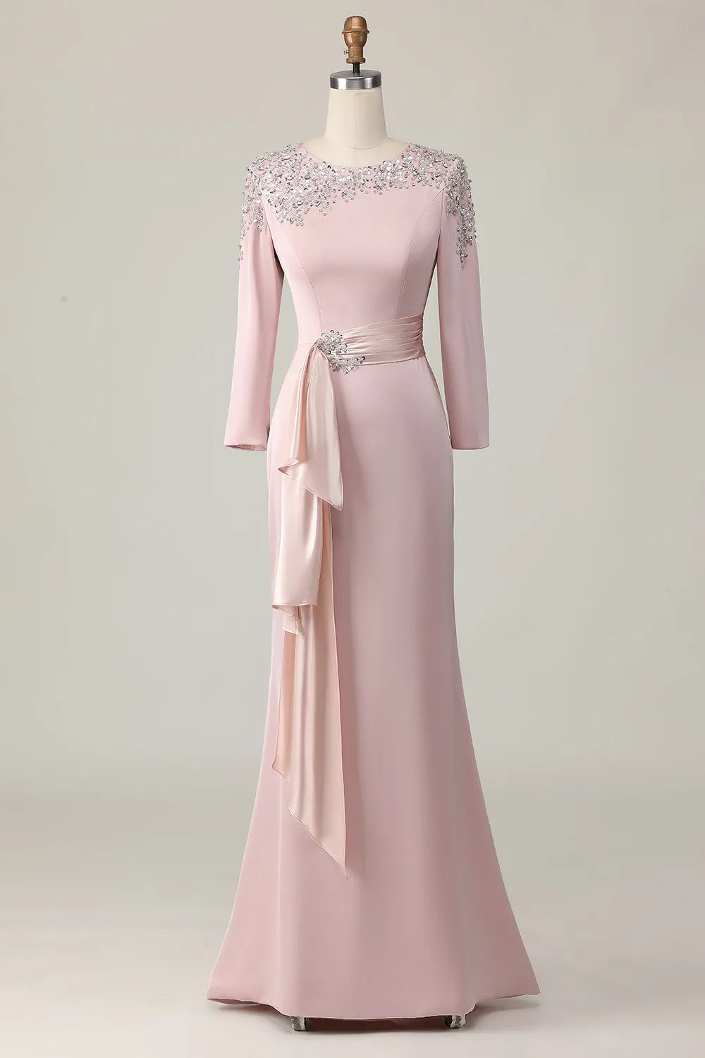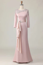 Lace Sheath Blush Mother Of The Bride Dress with Long Sleeves
