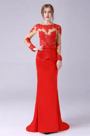 Long sleeves Jewel lace Mermaid Floor Length mother's dress