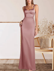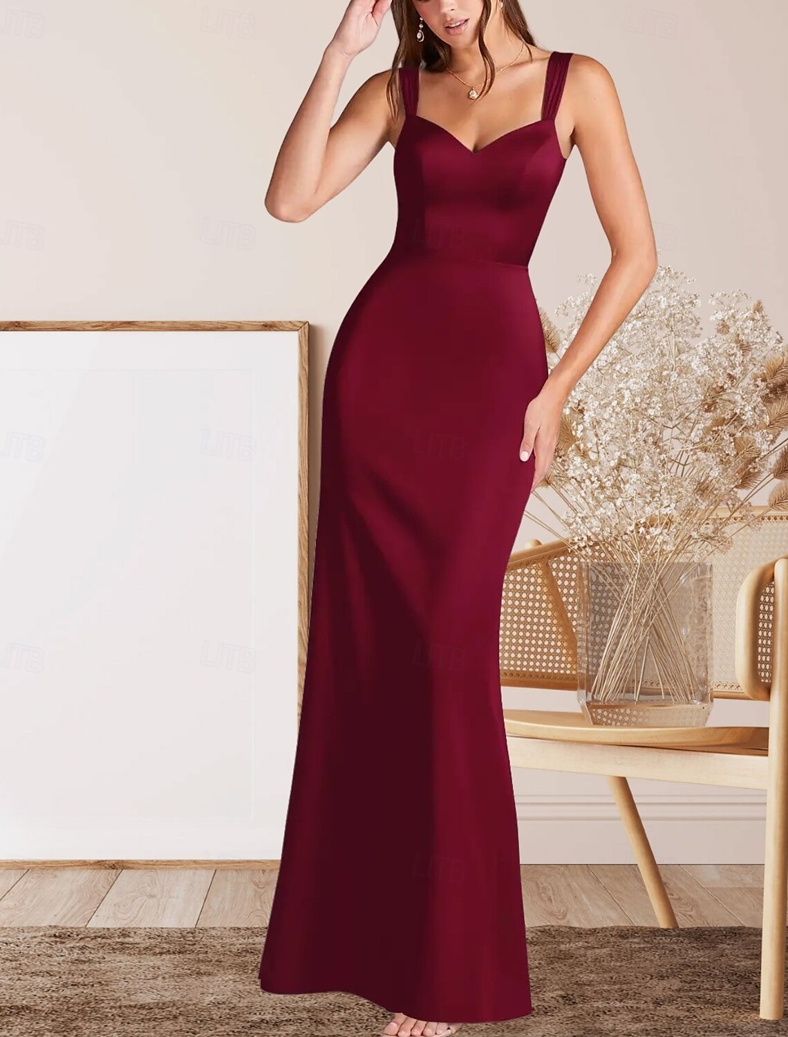 Mermaid / Trumpet Mother of the Bride Dress Wedding Guest Elegant Minimalist V Neck Floor Length Satin Sleeveless with Ruching