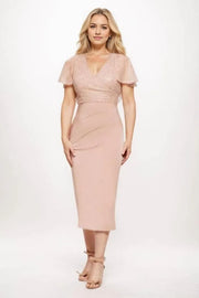 Pink V-neck luxury satin Mother of the Bride Dresses - US 2 / UK 8 / EU 32