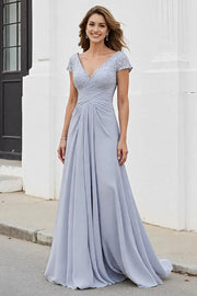 Silver Chiffon A Line Mother of the Bride Dress with Appliques