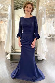 Sleeves Mermaid Pleated Long Mother of the Bride Dress