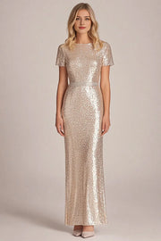 Sparkly Apricot Sheath Sequins Short Sleeves Long Mother of the Bride Dress - US 2 / UK 8 / EU 32