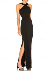 Trumpet Evening Gown Elegant Dress Evening Party Black Tie Gala Floor Length Sleeveless Sweetheart Wednesday Addams Family Cotton Blend Backless with Bow(s) Criss Cross Ruffles - US 2 / UK 8 / EU 32