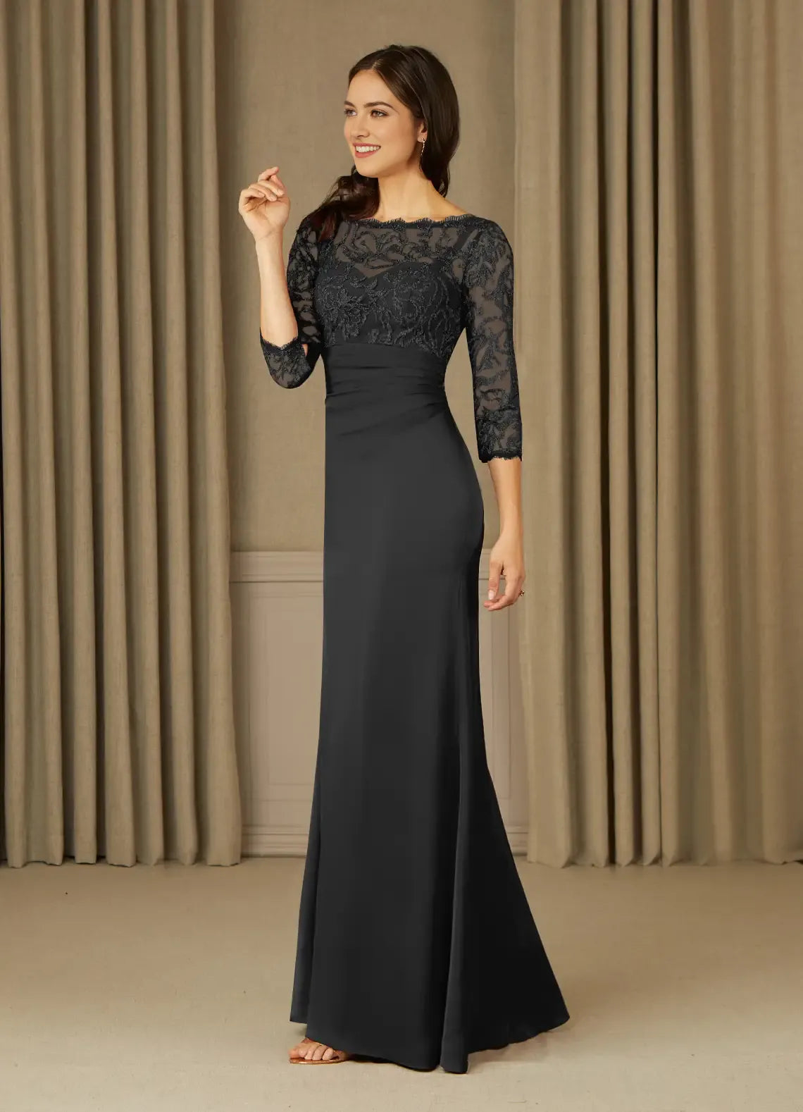 Unique Black Mother of the Bride Dreses Sophisticated Sheer Lace 3/4 Sleeves Illusion Neckline Intricate Detailing Timeless Mermaid Design - US 2 / UK 8 / EU 32