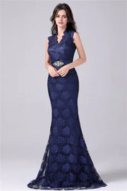 V-neck Sleeveless Lace Flower Mermaid mother's dress