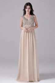 V-neck strap Sequined Floor Length Sleeveless Backless mother's dress