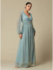 Green Fashion Party/Wedding Guest V Neck Long Sleeve Sparkle Polyester Maxi Dress dress to impress - US 2 / UK 8 / EU 32