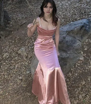 Mermaid Straps Party Dress Long Pink Prom Dress