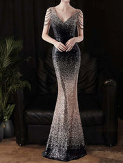 Mermaid Trumpet Sequin Prom Dresses Ombre Party Dress Formal Cocktail Party Floor Length Sleeveless V Neck with Beading Sequin
