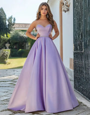 Light purple A-line satin long strapless ball gown - US 2 / UK 8 / EU 32