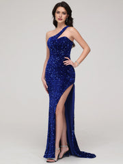 One Shoulder Mermaid Sequins Wedding Party Dresses