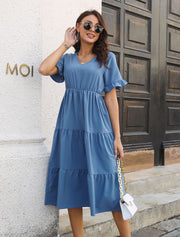 Valentine's Day Women's Normal Midi Dress Swing Dress Boho Chic Dresses Tiered Dress Bohemia Stylish Classic Elbow Sleeve Vacation Party Daily Form Fit Plain Short Sleeve V Neck Black Sky Blue Green