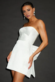 White Satin Strapless Bow Party Dresses