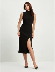 Women's Black Dress Sleeveless High Slit Dress High Neck Midi Party Dress - US 2 / UK 8 / EU 32