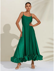 Women's Green Luxe Satin Special Occasion Dress 3D Ruffle Cami Maxi Party/Wedding Guest Dress dress to impress - US 2 / UK 8 / EU 32