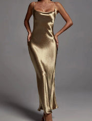 Women's Long Dress Maxi Dress Graduation Dress Party Dress Slip Dress Elegant Fashion Party Birthday Evening Party Regular Fit Plain Sleeveless Spaghetti Strap Champagne Red Summer - Champagne / US 2 / UK 8 / EU 32