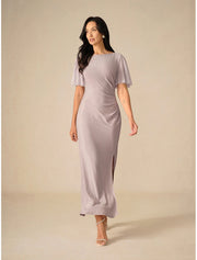 Women's Maxi Dress Sheath Dress Elegant Party Wedding Party Wedding Guest Solid Color Short Sleeve Crew Neck Pink Summer Spring Fall - US 2 / UK 8 / EU 32