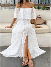 Women's Maxi Dress White Dress A Line Dress Elegant Ruffle Sleeve Wedding Guest Cocktail Party Loose Fit Solid Color Plain Short Sleeve Off Shoulder White Apricot Summer - White / US 2 / UK 8 / EU 32