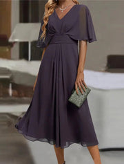 Women's Midi Dress Cocktail Dress Swing Dress Summer Dress Fashion Outdoor Holiday Date Regular Fit Plain Short Sleeve V Neck Pink Blue Purple Summer - Purple / US 2 / UK 8 / EU 32