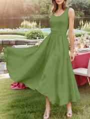 Women's Midi Dress Sundress A Line Dress Off The Shoulder Dress Vacation Casual Beach Outdoor Party Going out Regular Fit Solid Color Graphic Plain Sleeveless U Neck White Pink Wine Navy Blue Summer - Green / US 2 / UK 8 / EU 32