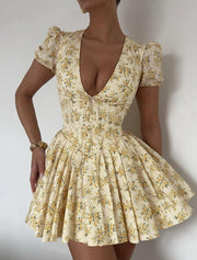 Women's Mini Dress Casual Dress Floral Dress Fashion Elegant Dress Outdoor Party Holiday Regular Fit Flower Short Sleeve V Neck Yellow Summer