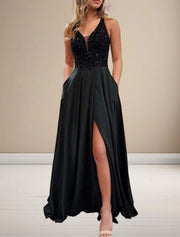 A-Line Evening Gown Glittering Dress Prom Birthday Sweep / Brush Train Sleeveless V Neck Sequined Crisscross Back with Glitter Beading Sequin