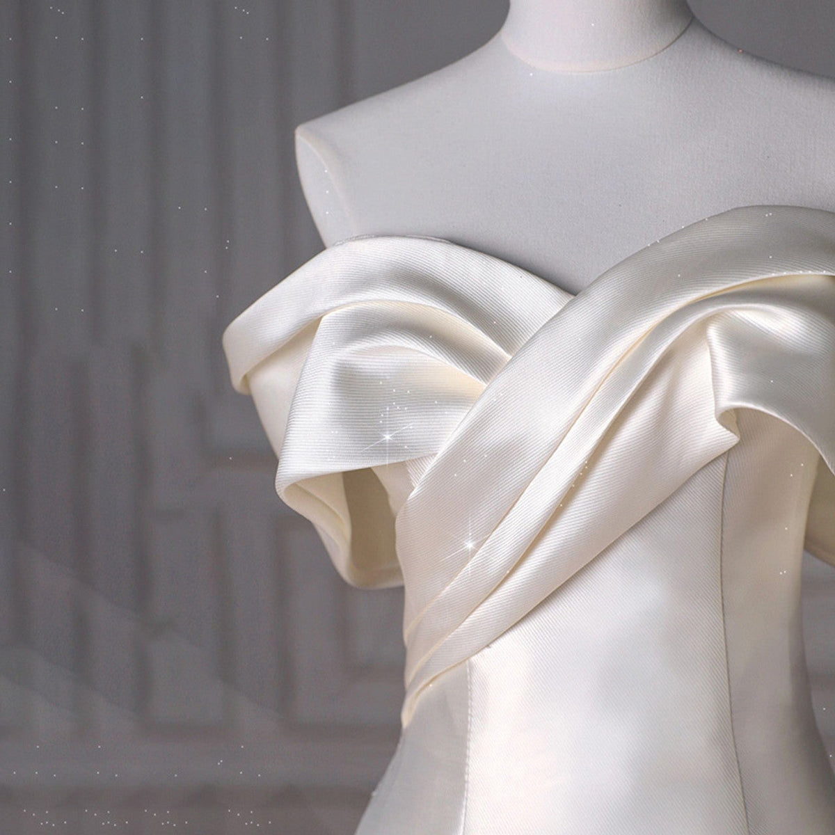 A-Line Off Shoulder Satin ivory Long Prom Dress Satin Long Formal Dress - US 2 / UK 8 / EU 32