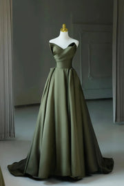 A-Line Strapless Satin Long Prom Dress Dark Green Evening Party Dress