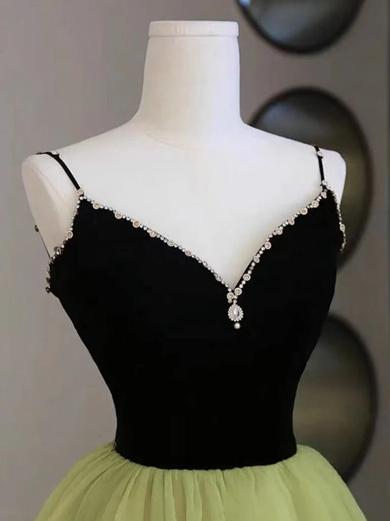 A-Line V Neck Green Tulle Long Prom Dress Green Formal Dress - US 2 / UK 8 / EU 32