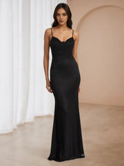 Black Lace Mermaid Prom Dress Spaghetti Straps Ruched Bodice for Glamorous - US 2 / UK 8 / EU 32