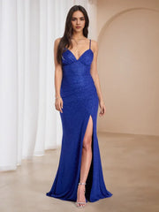 Add a touch of romantic charm to school dances with this periwinkle blue glitter prom dress. The sweetheart neckline and ruffled mermaid skirt create a feminine and dreamy look. The glitter fabric adds a sprinkle of magic, making you feel like a princess. Ideal for young ladies who want to embrace their sweet side while still looking glamorous on the dance floor.