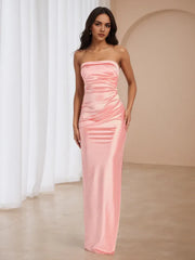 Blush Pink Satin Prom Dress Strapless Ruched Bodice Fairy Tale Charm for School Dances - US 2 / UK 8 / EU 32