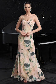 Blush Print Mermaid Long Prom Dress with Back Slit