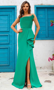 Chic One - Shoulder Orange Evening Gown with Asymmetric Ruffle and Side Slit Ideal for Glamorous Foreign Trade Balls and Formal Galas - Orange / US 2 / UK 8 / EU 32