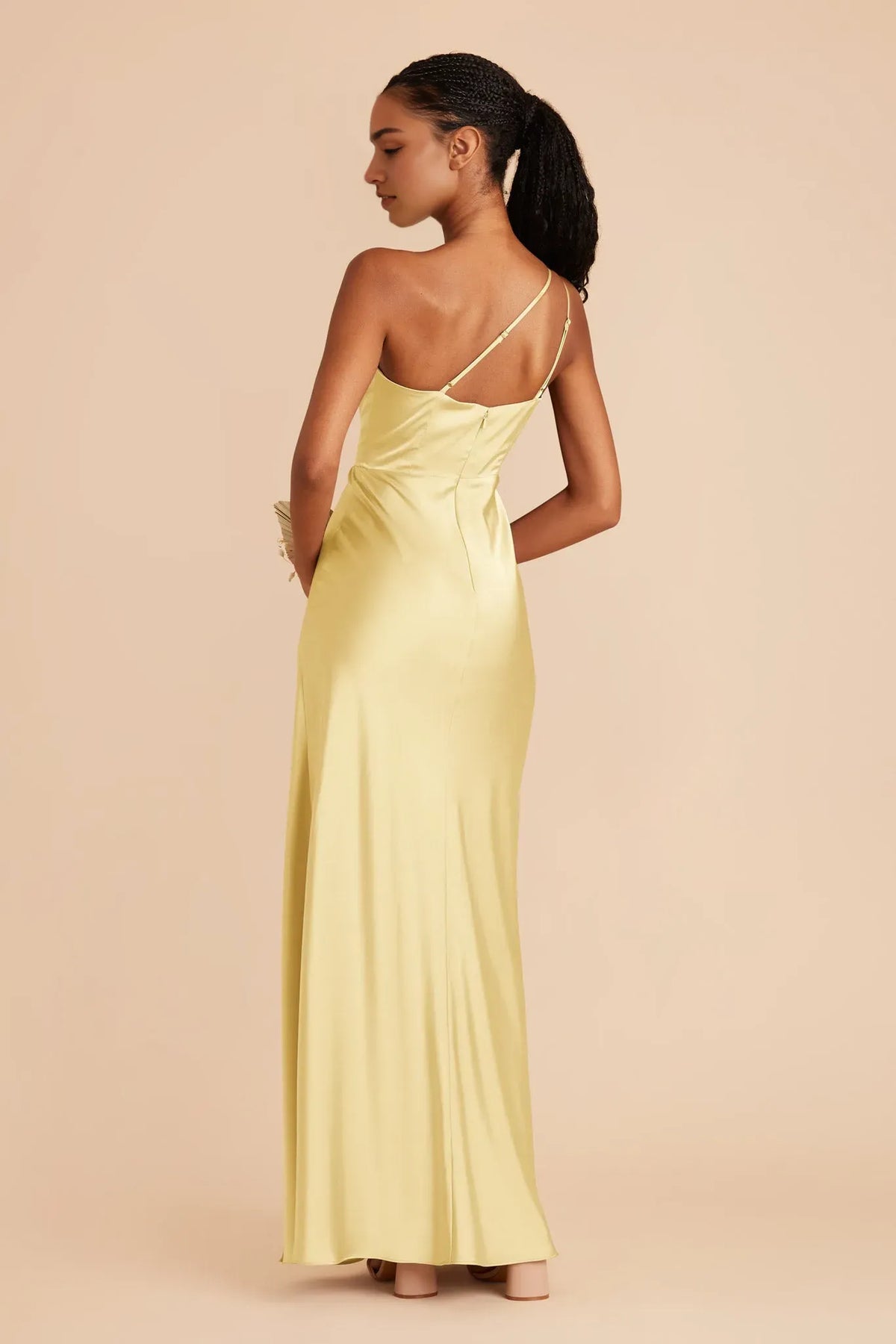 Chic Yellow One - Shoulder Prom Dress Satin Silhouette with Side Slit for City Sophistication - US 2 / UK 8 / EU 32