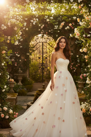 Charming A Line Sweetheart Neck Sleeveless Floral Embroidered Tulle Lace Up Floor-Length Prom Dress with Appliques