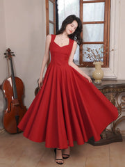 Elegant A-Line Sweetheart Neck Sleeveless Red Midi Prom Dress