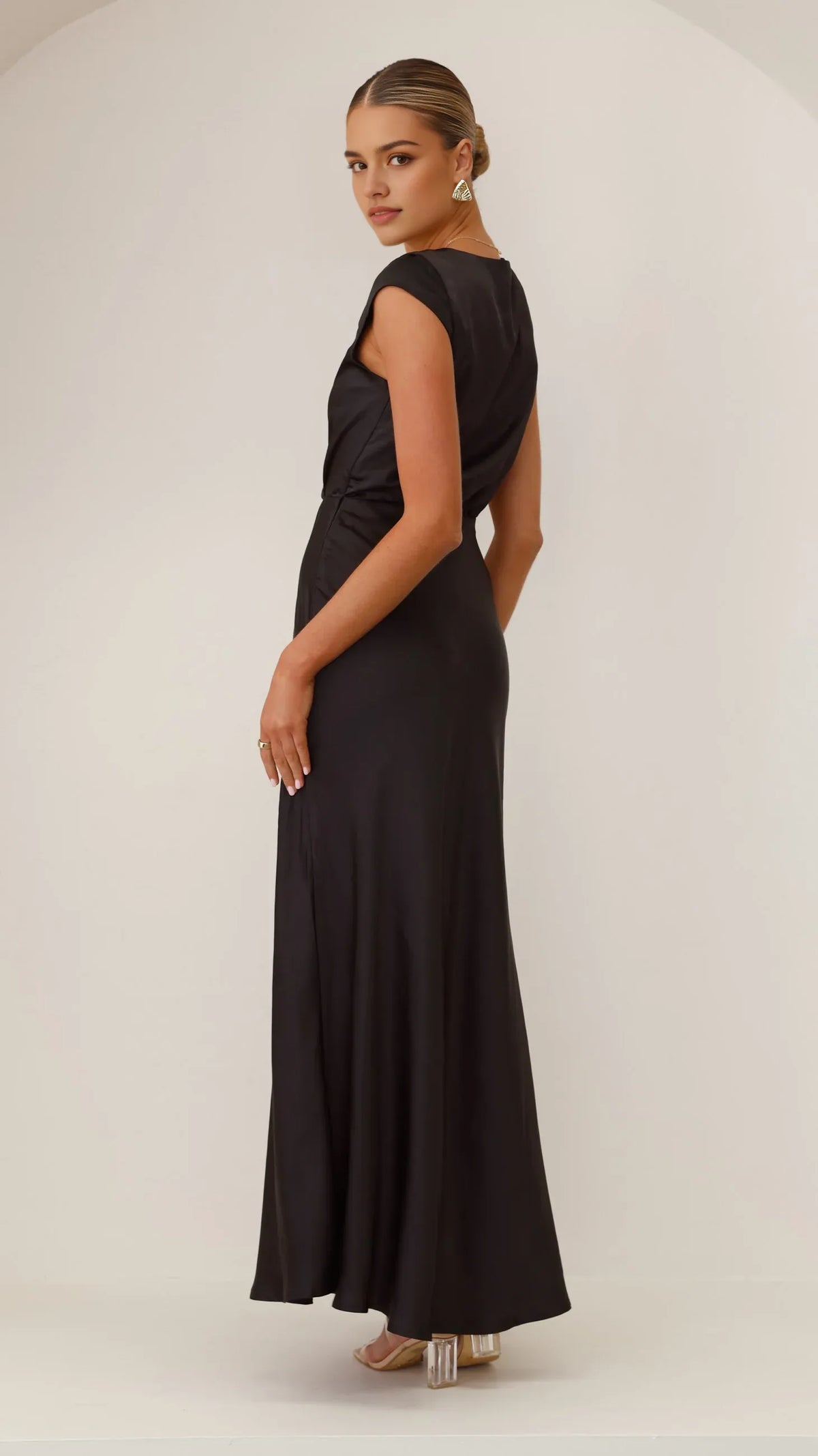 Elegant black Satin v neck short sleeve for sale Chiffon Prom Dresses for Women's Special Occasions - US 2 / UK 8 / EU 32