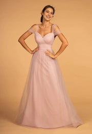 Indulge in timeless grace with this exquisite blush pink tulle prom dress. It features off - shoulder sheer sleeves that add a touch of delicate romance, framing the shoulders beautifully. The sweetheart neckline enhances femininity, while the ruched bodice flatters the figure. Crafted from layers of soft tulle, the flowy A - line skirt creates a dreamy, ethereal movement with every step. Perfect for proms, evening galas, or any formal event, this gown combines elegance and charm to make you the center of attention.